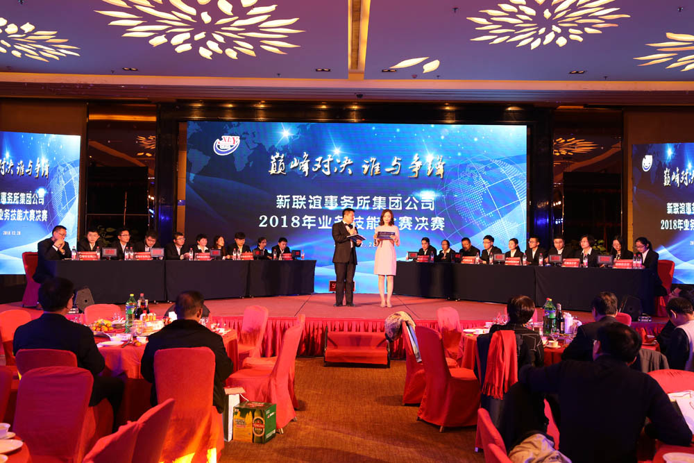 2018年12月28日下午,新聯(lián)誼事務(wù)所集團(tuán)公司在美爵大酒店舉辦主題為“奮進(jìn)新時(shí)代 再創(chuàng)新輝煌”2019年迎新晚會(huì)暨業(yè)務(wù)技能大賽決賽。