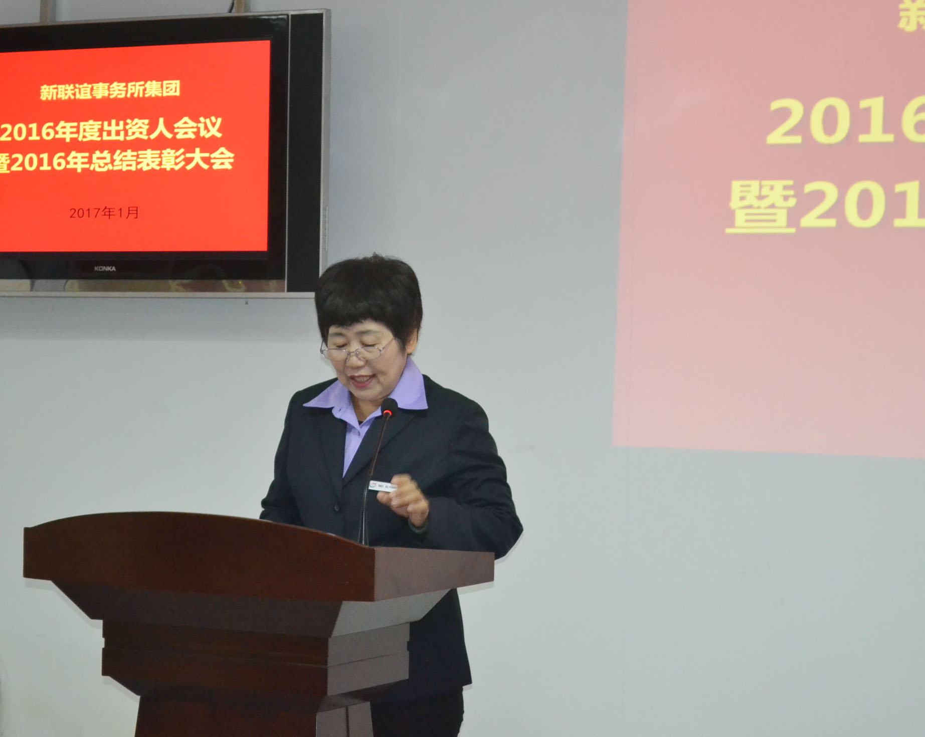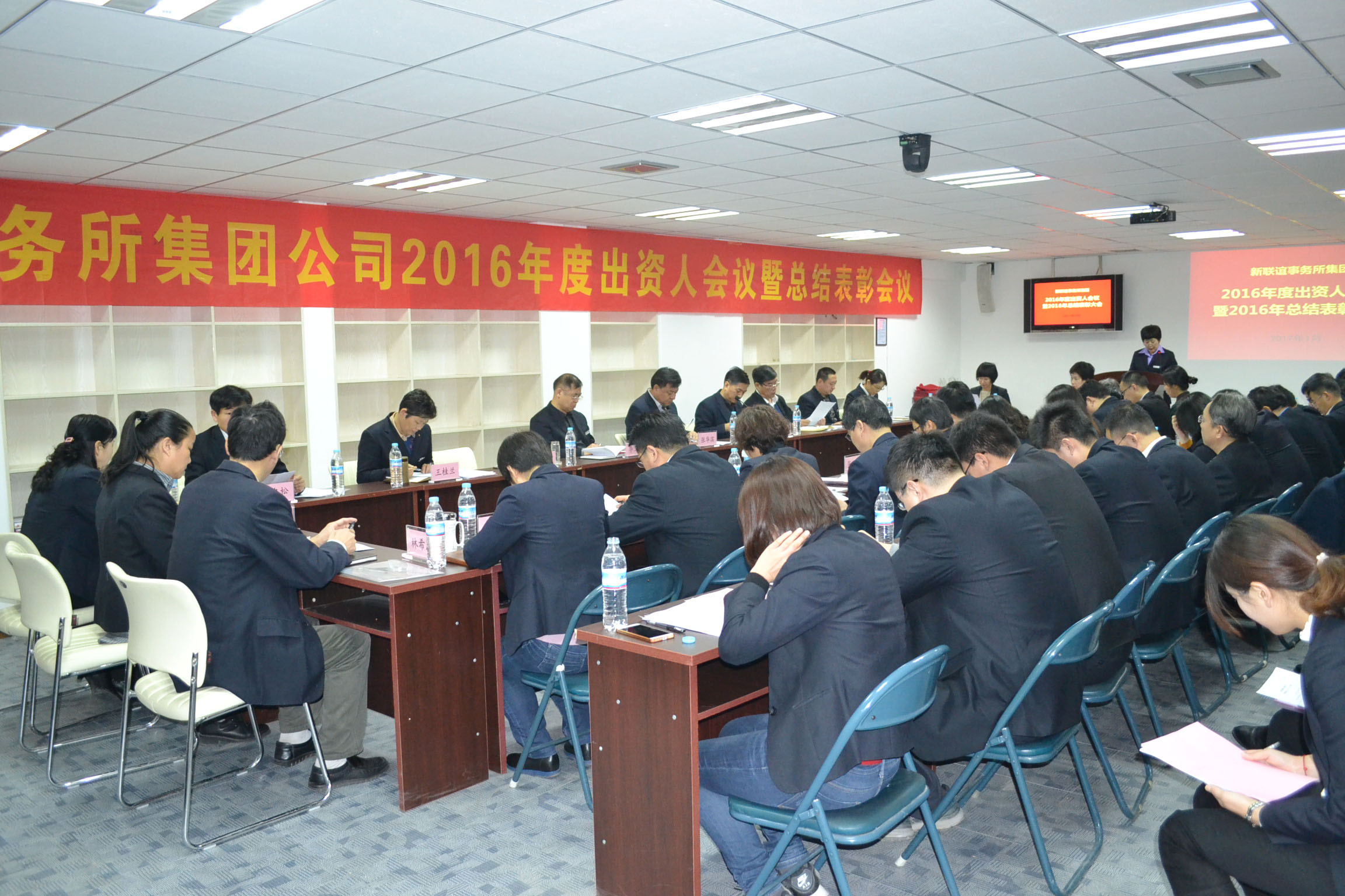 2017年1月23日上午,新聯(lián)誼事務(wù)所集團公司召開2016年出資人會議暨總結(jié)表彰會議。主會場設(shè)在視頻會議室,25名股東出席會議,34名年度獲獎員工列席會議。集團公司其他員工在十六個分會場觀席會議。